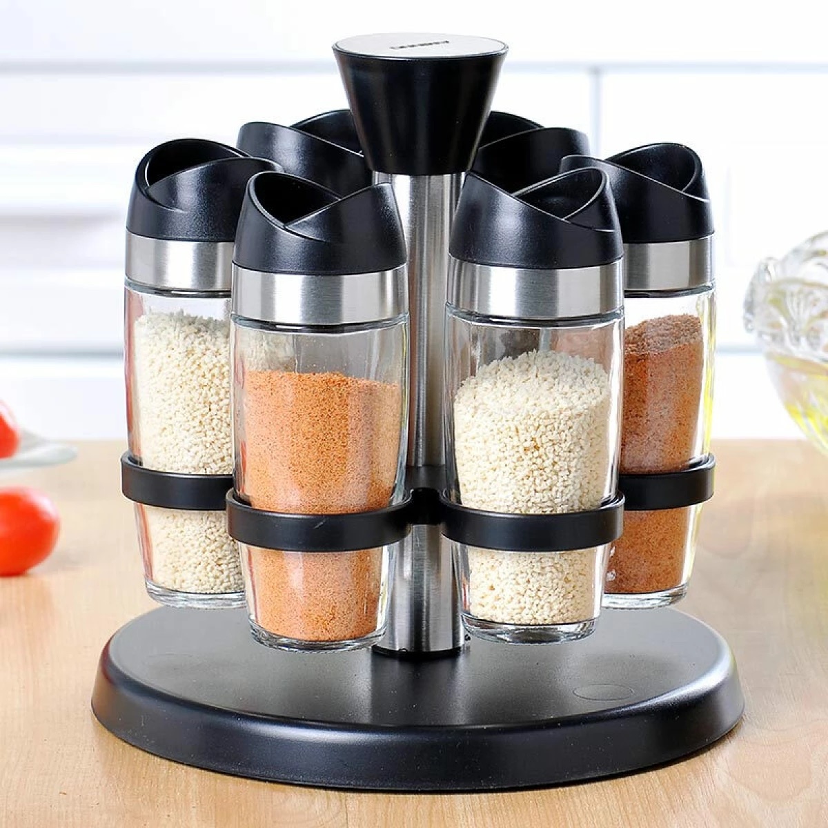Set 6 Frascos Especieros Vidrio C/ Soporte Giratorio