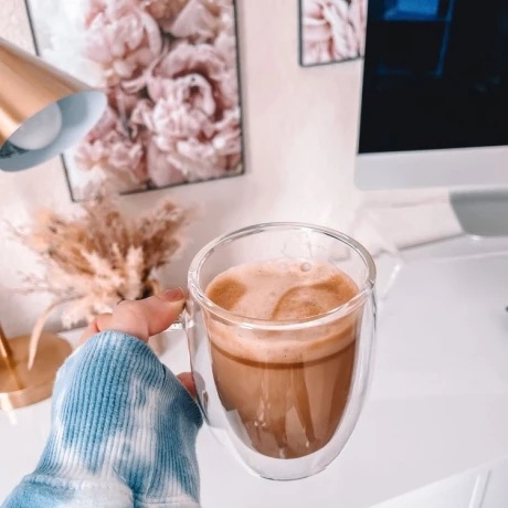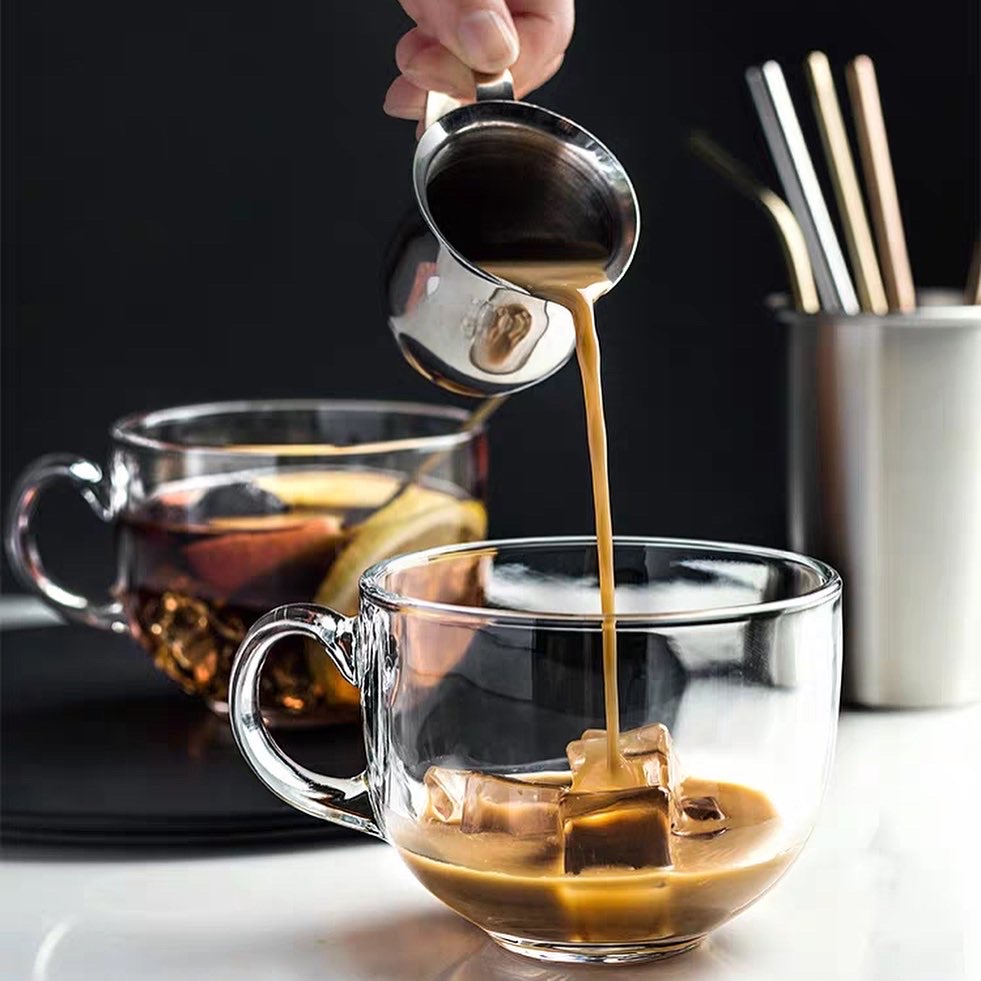 Tazas térmicas o de vidrio doble pared con asa. El diseño de doble vidrio aislante prolonga la temperatura de la bebida por más tiempo lo que la hace ideal para bebidas muy frías o muy calientes. Material: vidrio de borosilicato resistente al calor.