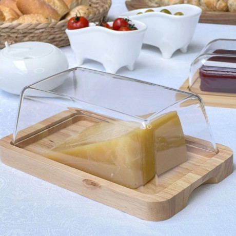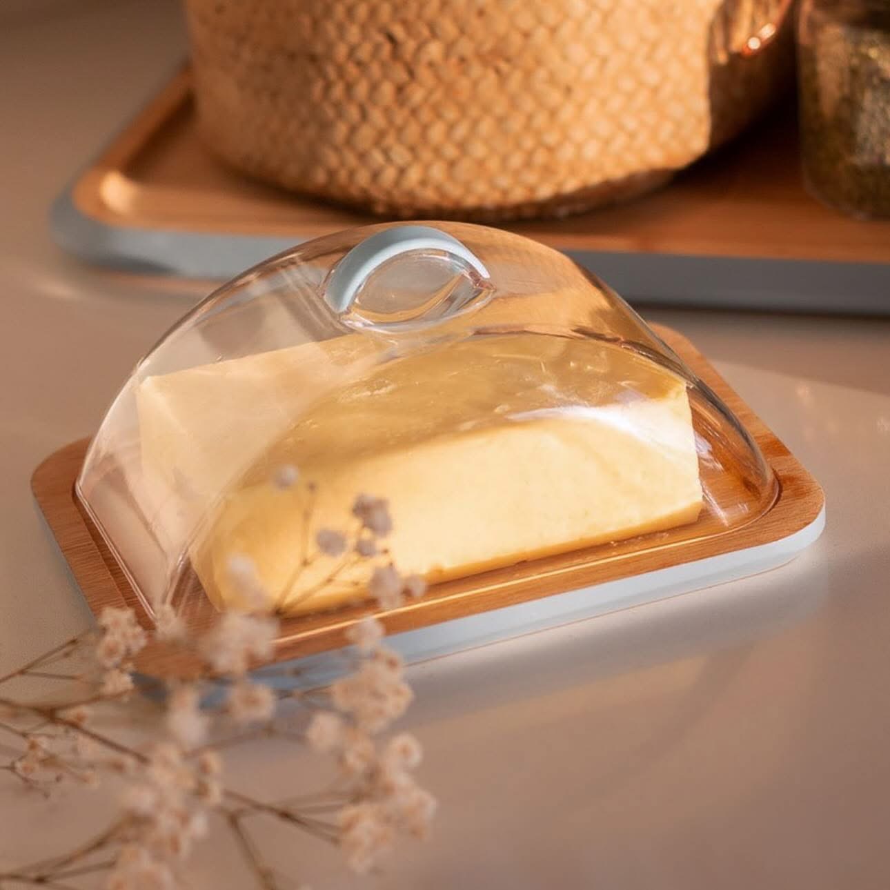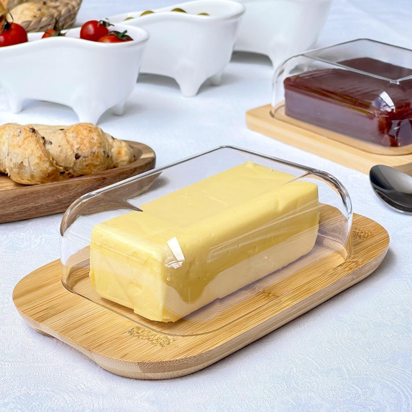 La base de madera de bambú le da a la mantequera una resistencia y durabilidad excepcionales. Su tapa de acrílico permite una fácil visualización del contenido, manteniendo la mantequilla fresca y lista para usar.