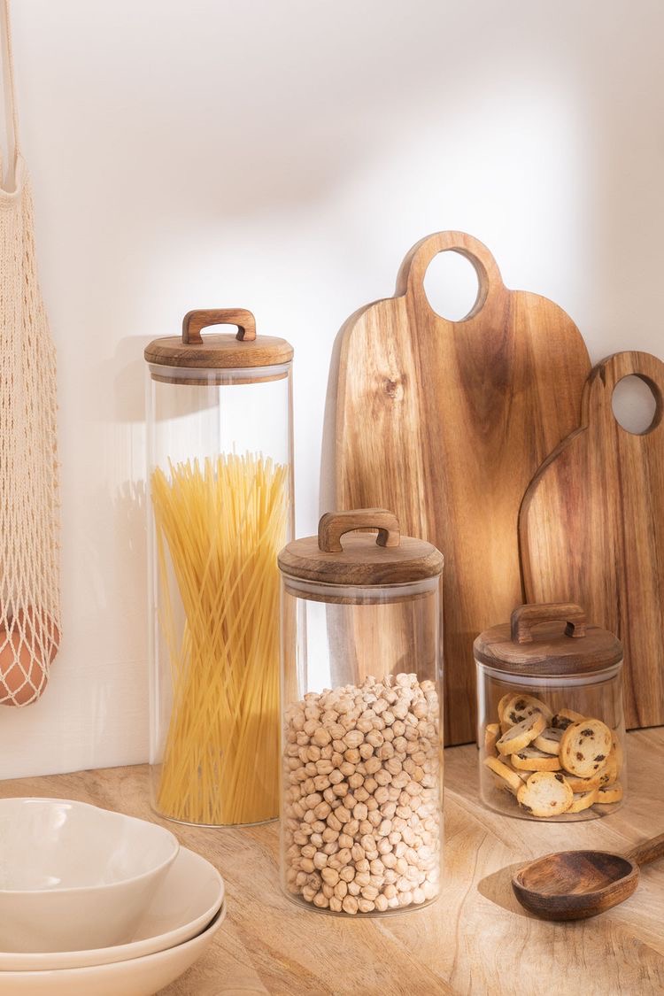 Frascos Herméticos Multiusos Vidrio C/Tapa Acacia