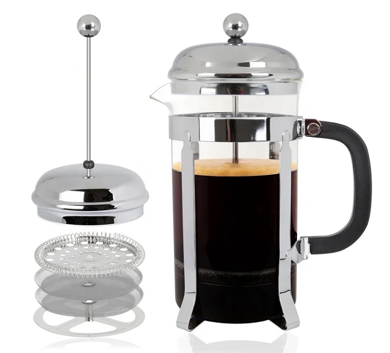 Cafetera Manual Embolo Prensa Francesa Vidrio Y Acero