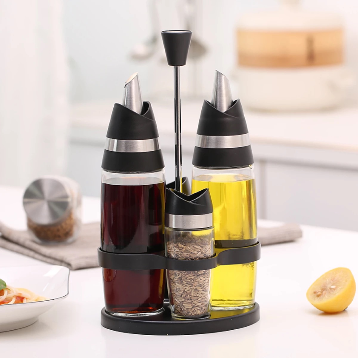 Aceitero/Vinagrero Automático C/Especieros Aminno