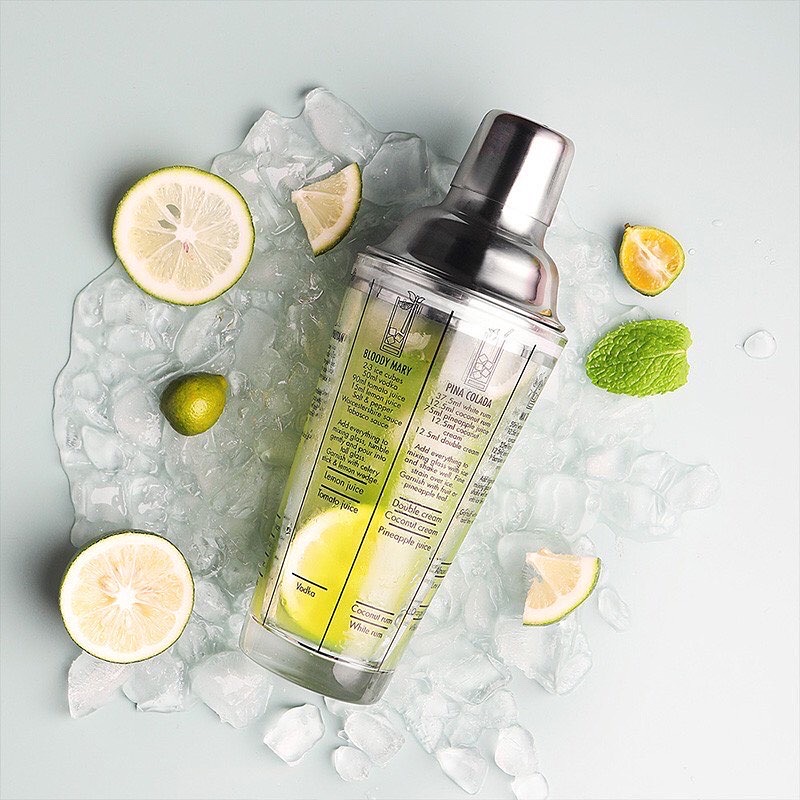 Coctelera con recetas impresas en el cristal de 400 ml con tapa y colador de acero inoxidable. Tanto si eres un principiante como un profesional, esta coctelera te ayudará a hacer tu propio cóctel. Cuenta con las recetas mai tai, piña colada, Blody Mary, cosmopolitan, margarita, daiquiris, y más.