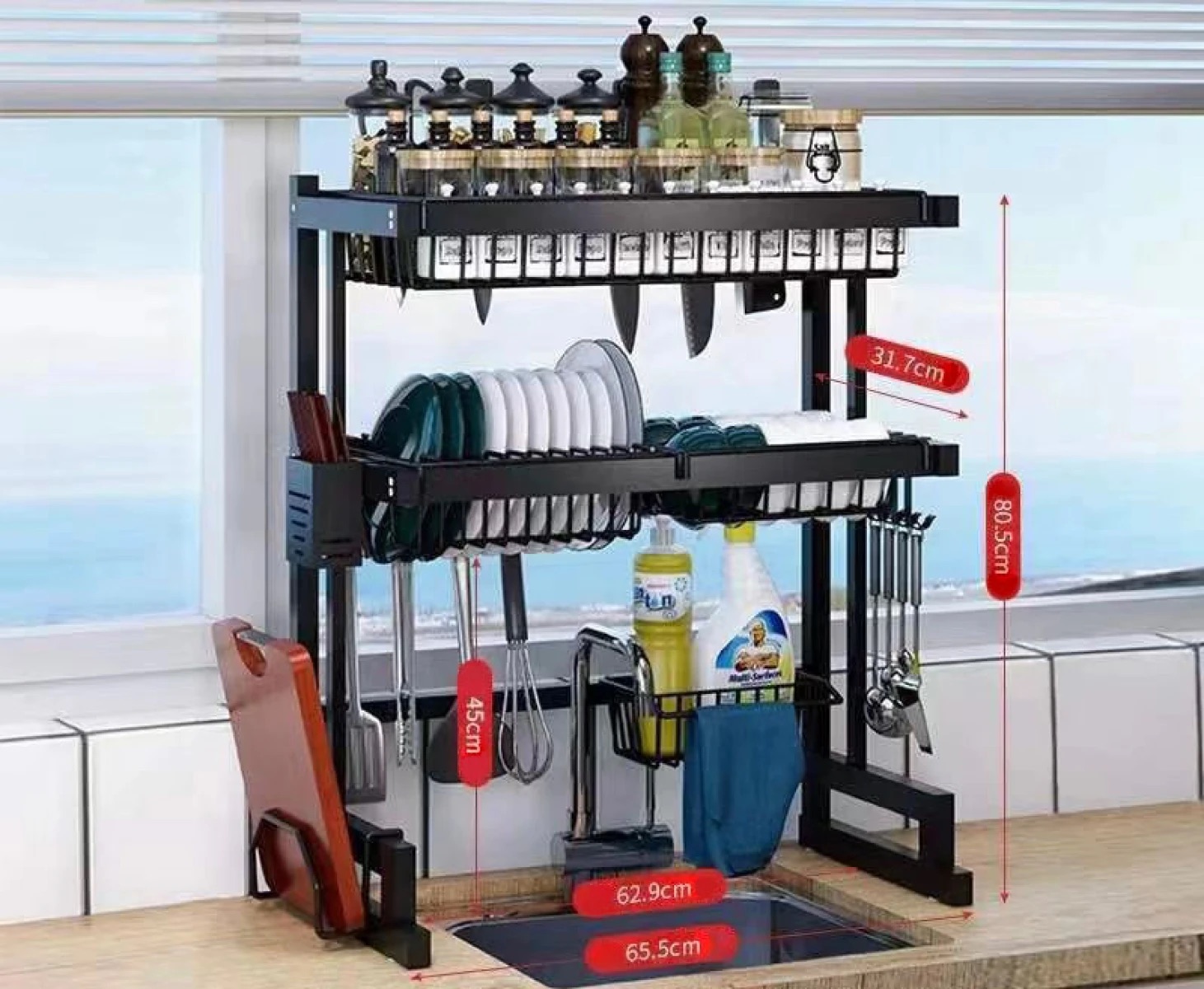 Escurridor De Platos y Utensilios Metalico 65cm . Negro mate