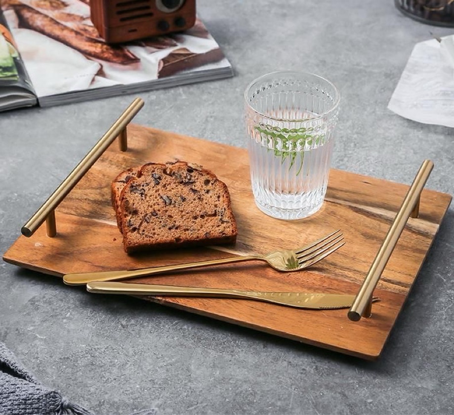 Bandeja rectangular hecha de madera de acacia. Una madera que tiene la peculiaridad duradera y de primera calidad. Se trata de un artículo multiuso, ideal para combinar con los accesorios de baño naturales, un apoyo para los utensilios de cocina, para combinar con los accesorios de oficina o como decoración.