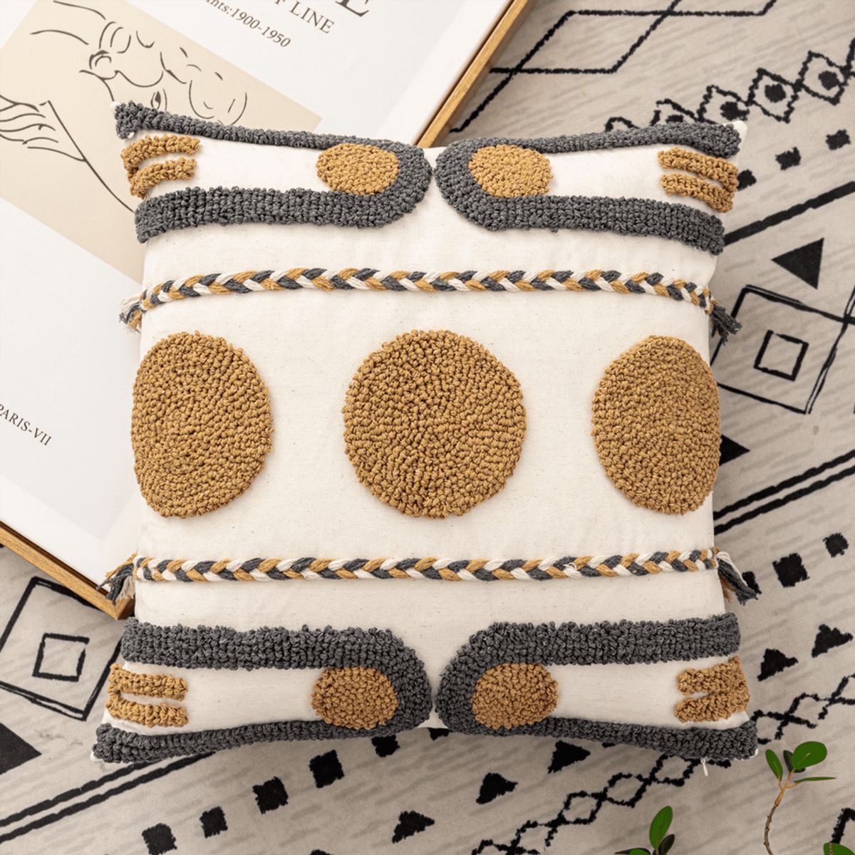 Almohadones Boho . Los almohadones bordados están en tendencia y se adaptan muy bien q diferentes estilos. Los colores neutros y cálidos le darán un aire relajado al ambiente. Almohadón bordado poliéster